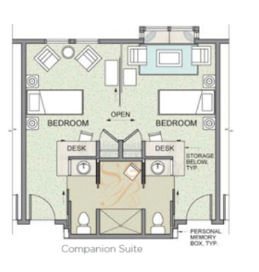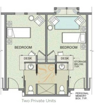 In Singapore, we do not have the luxury of space. However, giving every senior a small personal space within their room can provide quality rest and promote recuperation. Smart architectural designs can transform a 2-bedroom unit with shared amenities and living space. This is particularly important for Singapore where we strive to maximise space where possible (Please see the below illustrations)